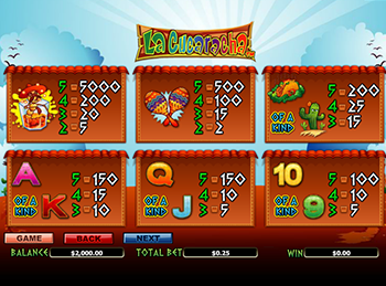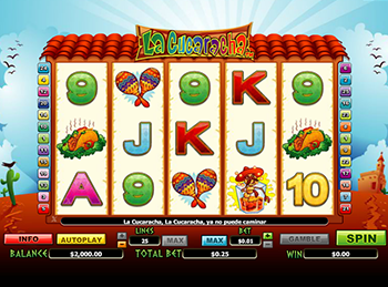 Жгучий перец, заводные маракасы, сомбреро и гитара – это то, без чего так трудно представить Мексику и игровой слот La Cucaracha. Именно такие символы чаще всего встречаются на барабанах. Но также в игре вас ждут разноцветные карточные номиналы и главные герои. Все изображения прорисованы в мультипликационном стиле. Достаточно одного взгляда, чтобы понять: вас ждет невероятный уикенд в компании задорного таракана-мексиканца.